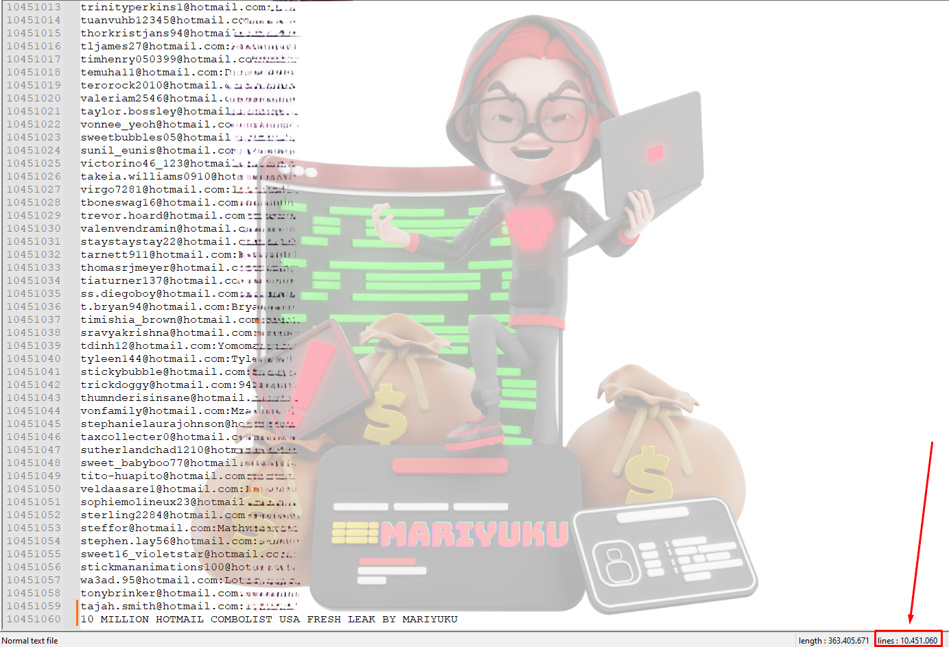 10 MILLION USA HOTMAIL COMBOLIST FRESH LEAK BY MARIYUKU PRIVATE