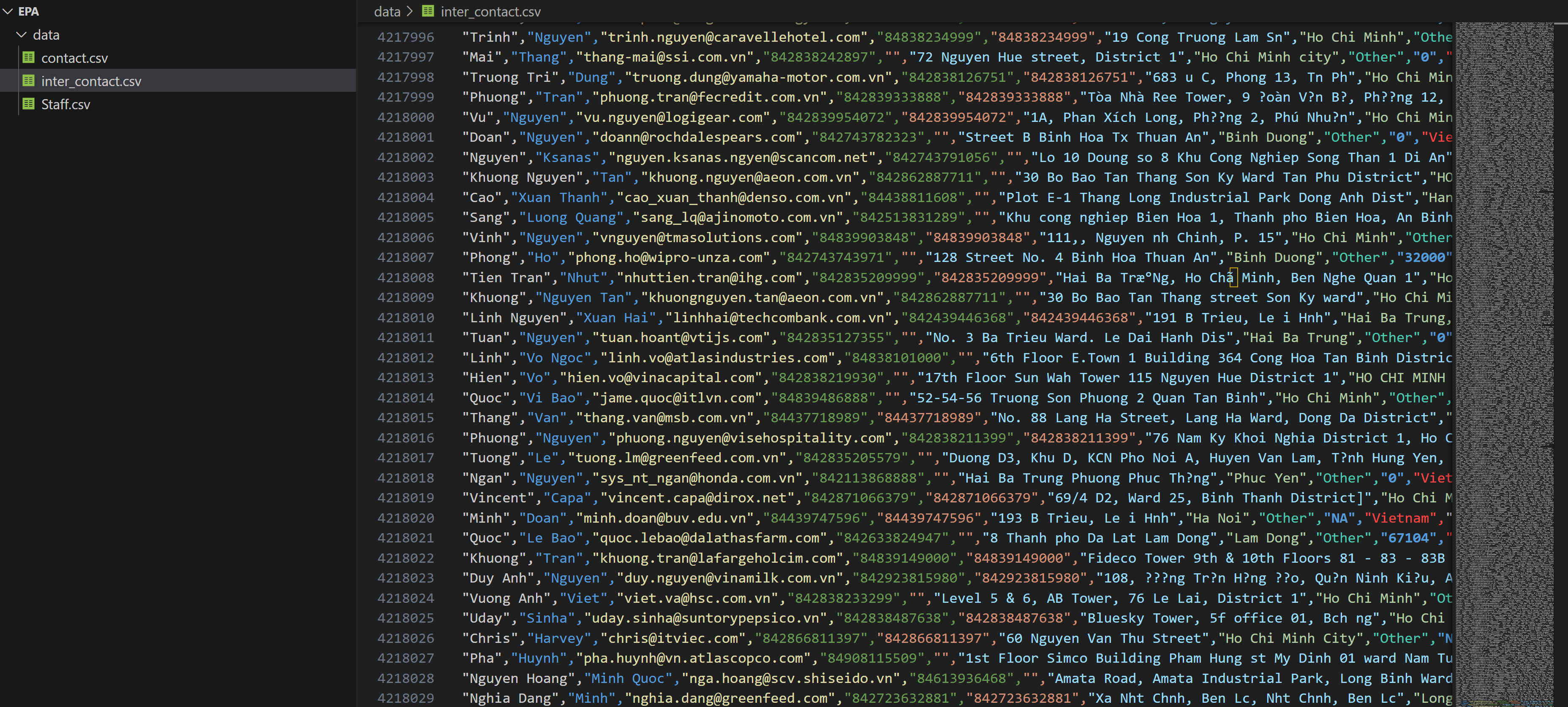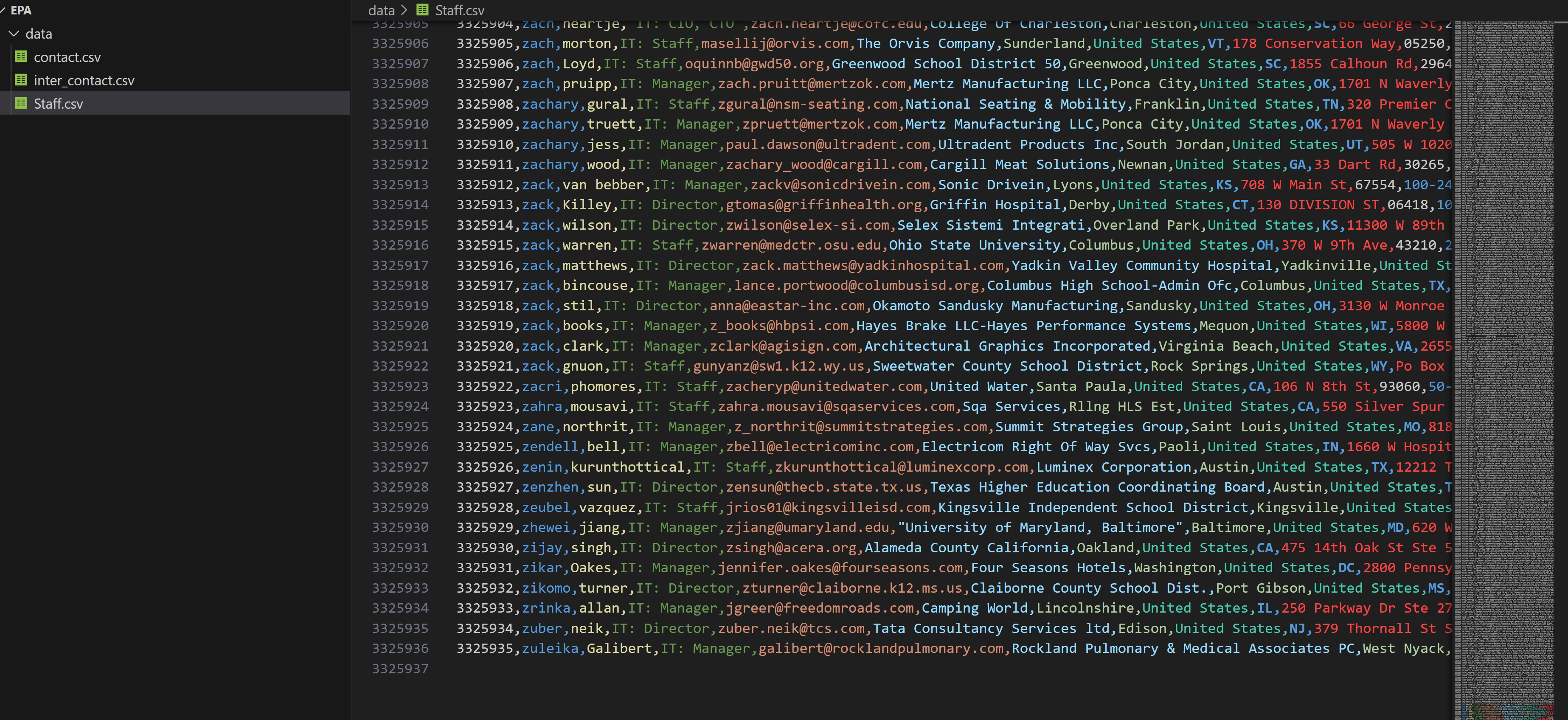 "REGISTRY_ID","PGM_SYS_ACRNM","PGM_SYS_ID","INTEREST_TYPE","AFFILIATION_TYPE","START_DATE","END_DATE","FULL_NAME","TITLE","PHONE_NUMBER","ALTERNATE_PHONE","FAX_NUMBER","EMAIL_ADDRESS","MAILING_ADDRESS","SUPPLEMENTAL_ADDRESS","CITY_NAME","STATE_CODE","STATE_NAME","POSTAL_CODE","COUNTRY_NAME"