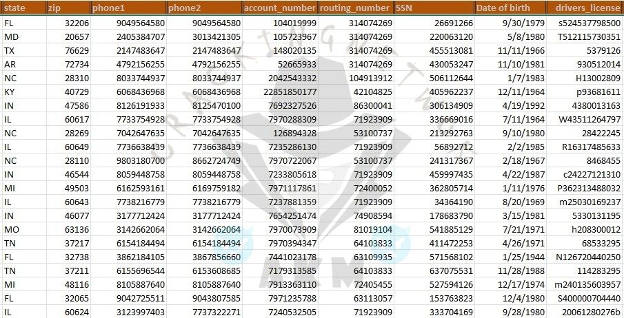 Warranty 1 days Lines 150000 Country USA Website https://crax.shop/resources/authors/akm.3498/ Description: 150K USA SSN FULLZ DATA INCLUDING DRIVERS LICENSE & BANK INFO FORMAT ========================================== Need Help ! Contact: https://t.me/AKM02301 Best Regards AKM ▁ ▂ ▄ ▅ ▆ ▇ █ CrackingNetwork █ ▇ ▆ ▅ ▄ ▂ ▁ ========================================== Screenshots: LEAVE A REVIEW FOR SUPPORT Reactions: assoverjugs