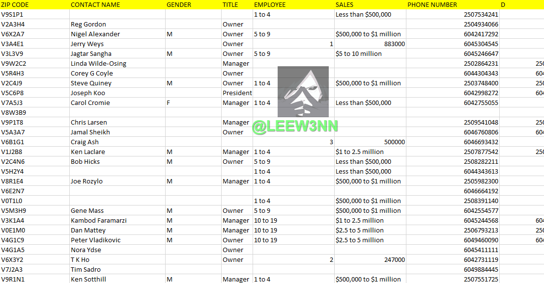 NAME+GENDER+TITLE+EMPLOYEE++SALES+PHONE NUMBER+D