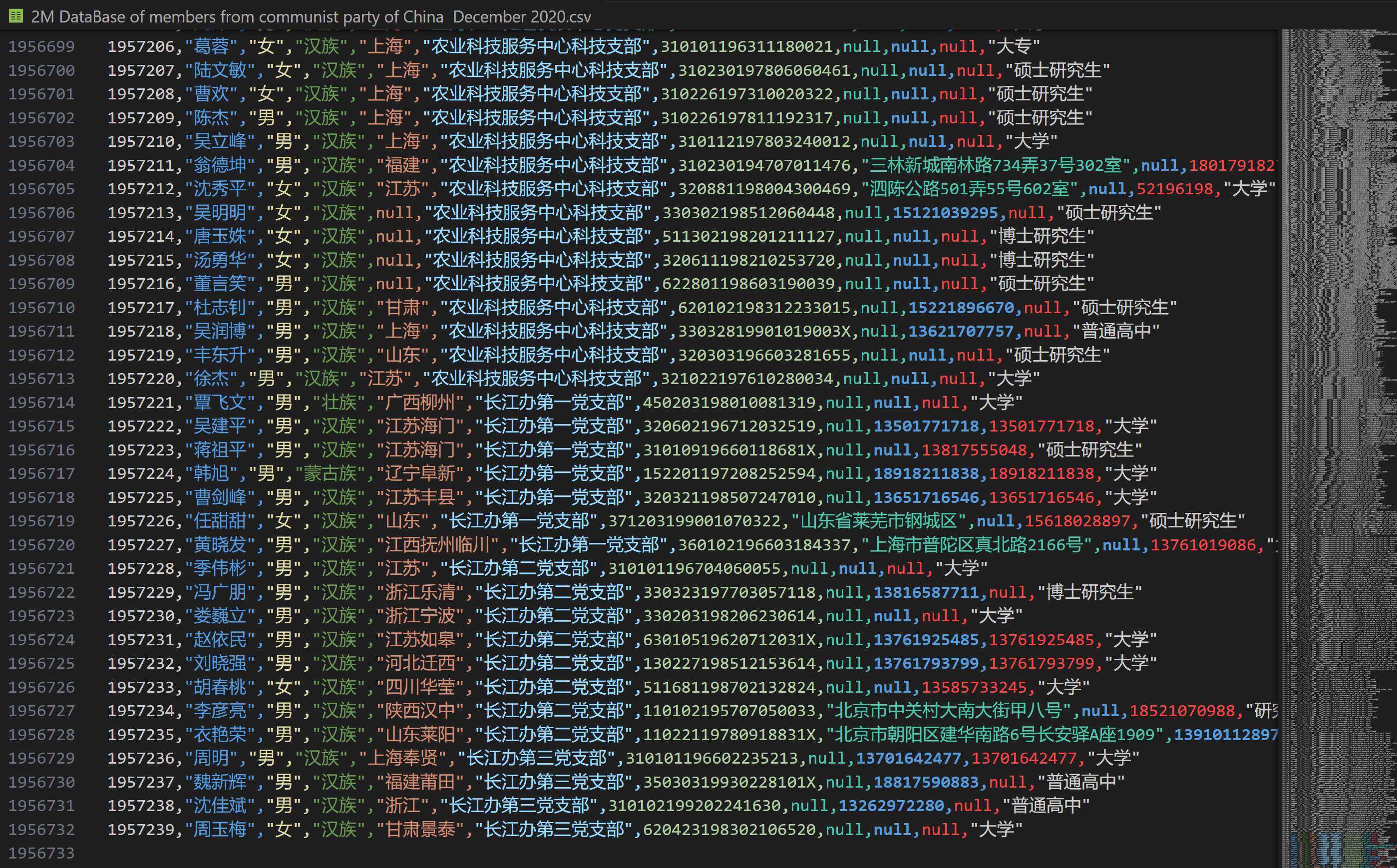 2M DataBase of members from communist party of China | December 2020
