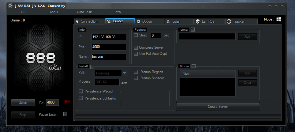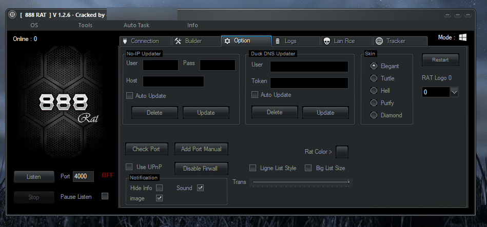 888 RAT is very High quality and Special than another RAT because it combines target cross-platform that can be used three in one panel, like Target Windows, Linux, and Android. If you're an old hacker, you know that it's also the latest cracked version, 1.2.6.