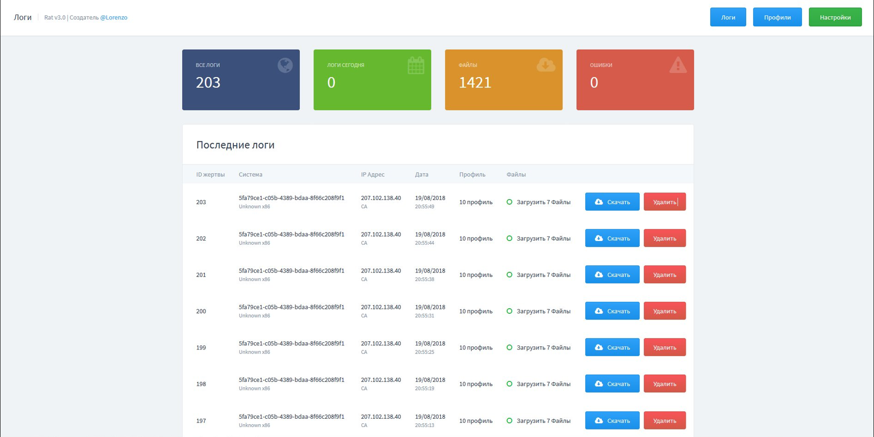 admin account, the name of the future folder for saving arkei reports and a direct