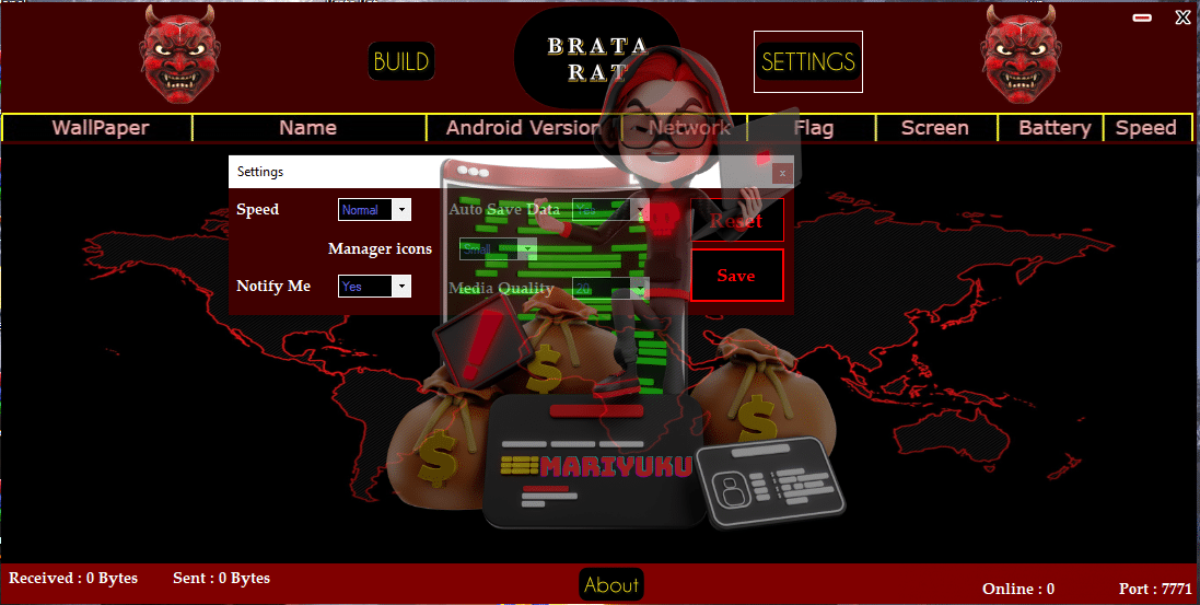 Many features inside this RAT are very Powerful and different. SpyMax and SpyNote are better features because they are up to date on RAT and are good with BRATA RAT