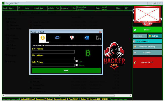 Dangerous RAT software has hidden RDP features which is one of the best features of this rat. This is a new feature in this RAT which you have not seen before in any other RAT. You can control your victim desktop remotely and hiddenly by using this feature.