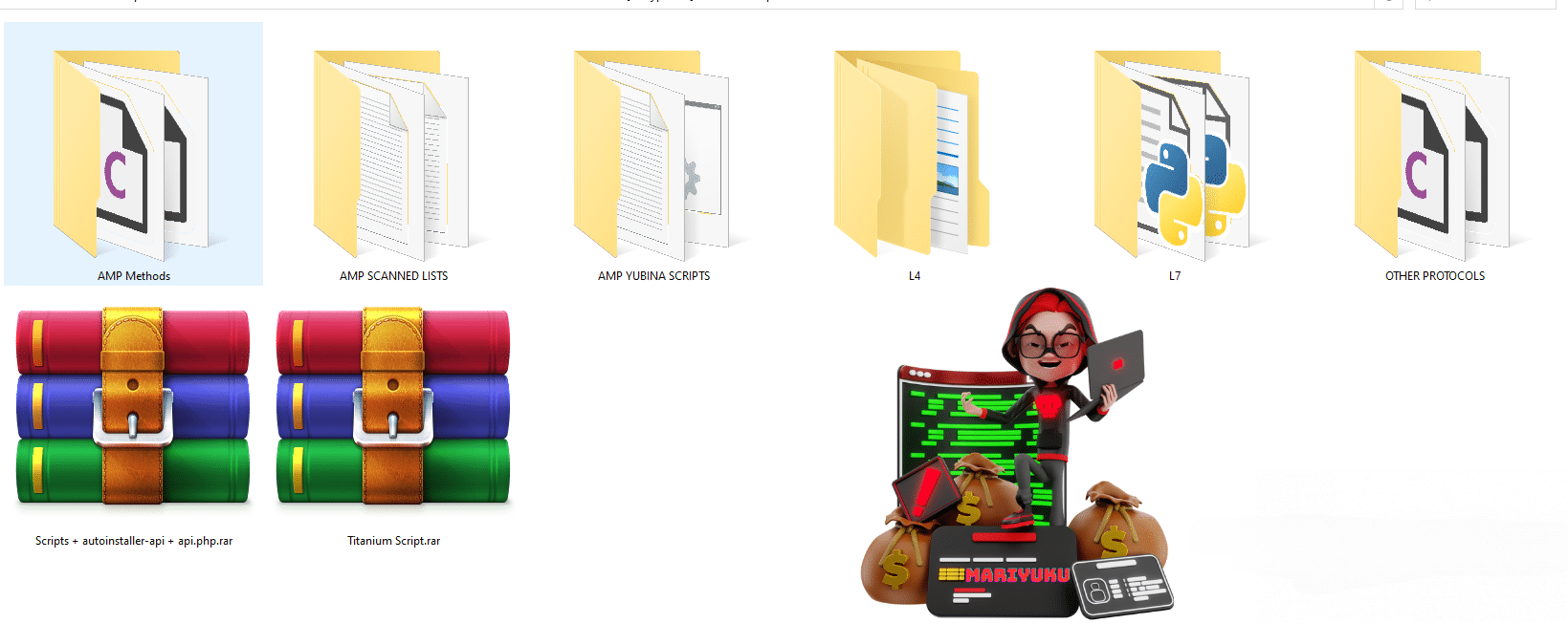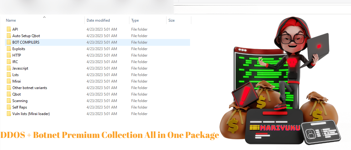 In this pack we have given you many different types of browsers, BotNets (Mirai and QBot Premium and Normal and more), Exploits, Methods, sniffers and much more, but still VMs, sandboxes and RDP. People are selling this pack for 500$ but we're giving it to you for 100$