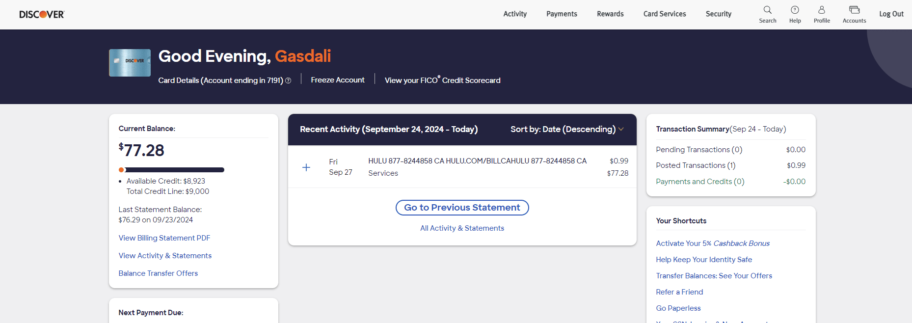 Security Info: - Name: RODRIGUEZ, GASDALI K