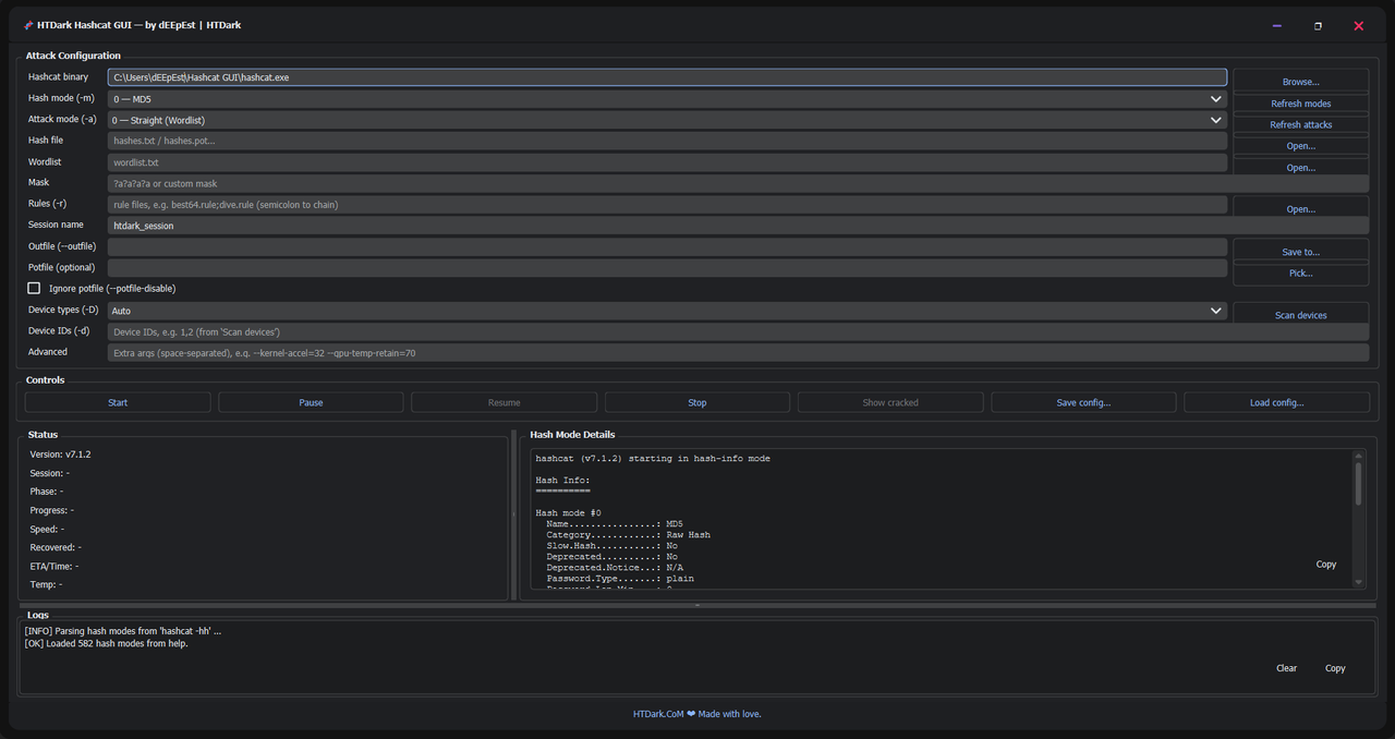 Warranty 1 days Description: Supports any version, just hashcat.exe and its files must be in the same folder as HTDark Hashcat GUI by dEEpEst.exe Screenshots: LEAVE A REVIEW FOR SUPPORT