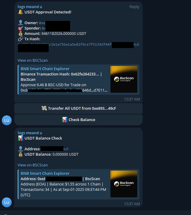 Product Image photo_2025-09-02_01-00-52.jpg Filesize: 49.9 KB Views: 78 Warranty 2 days Description: How it's work You send qr for victims When he approve it's , Than you get access for him wallet for spend unlimited Usdt in victims wallet Web3 0xScript Web3 0xScript Dm for custom job :- @gunlp t.me Boris Web3 Dev : No "Hello,Hi,Yo" - SAY WHAT YOU NEED! Don't message me for waste time! t.me Screenshots: LEAVE A REVIEW FOR SUPPORT