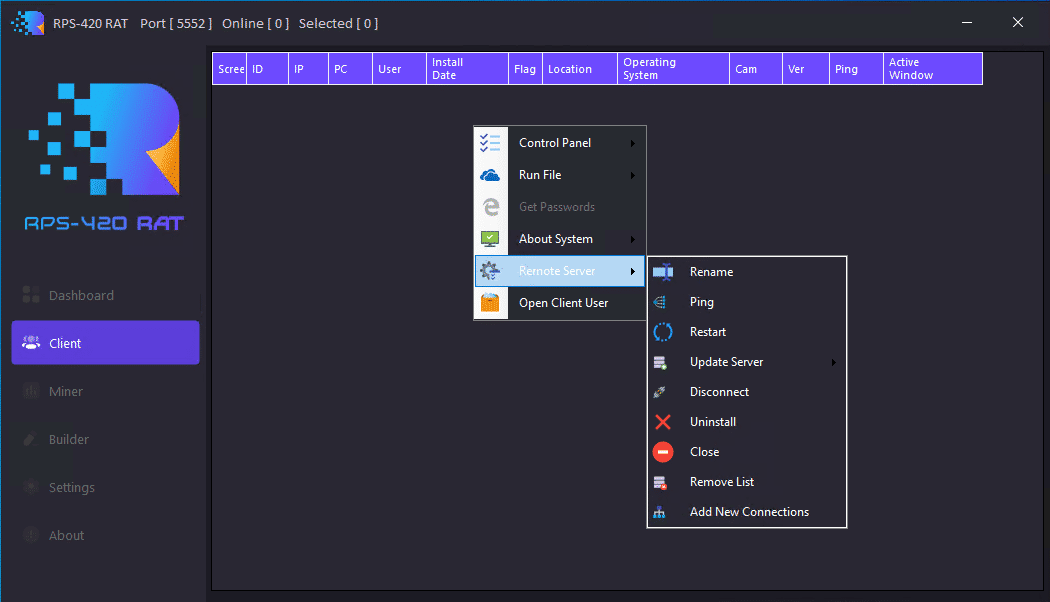 RPS420 RAT cracked its seen good UI very friendly but little bit responsive it ok still good with feature and everything same another for panel i have warranty for you good for managed as you see in Dashbaord network traffic look like botnet and really good for hold many clients